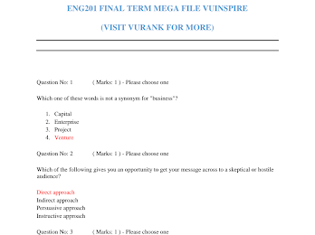 ENG201 final PAST PAPER AND QUIZ